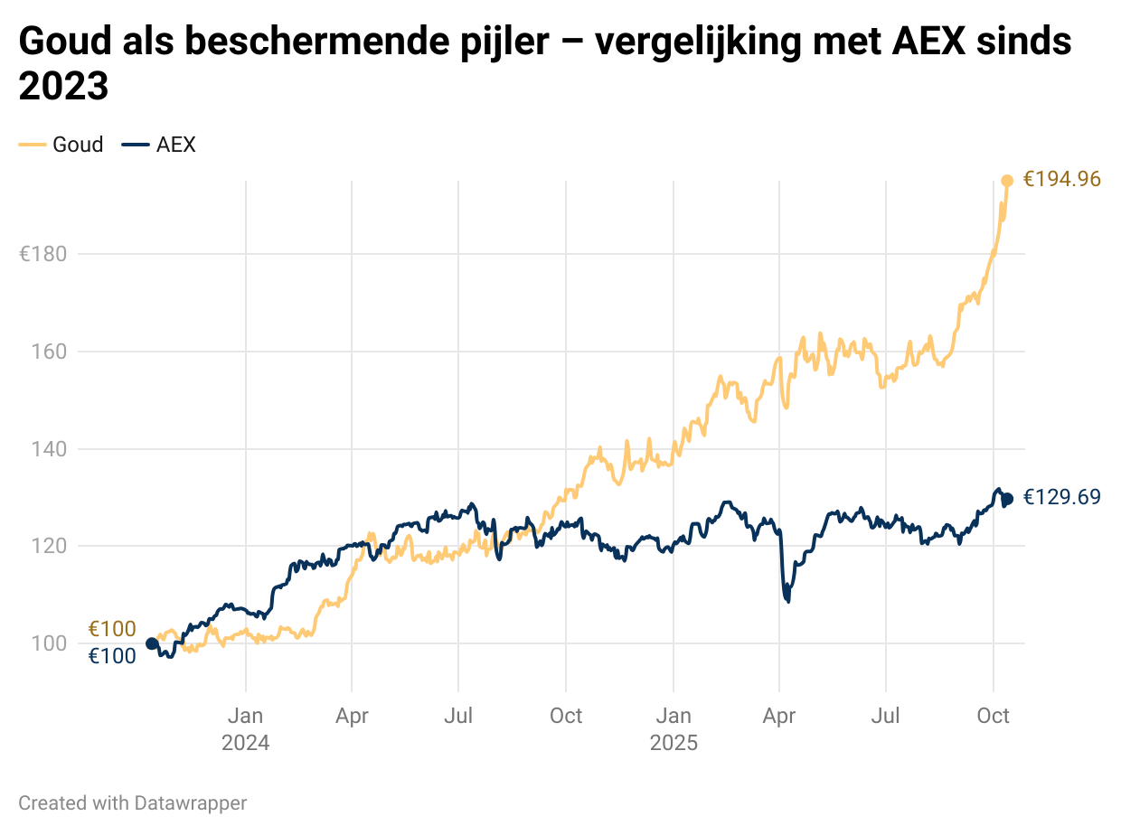 Goud blijft daarmee een betrouwbare pijler van een evenwichtige portefeuille: niet omdat het altijd stijgt, maar omdat het stabiliteit biedt wanneer dat het hardst nodig is.